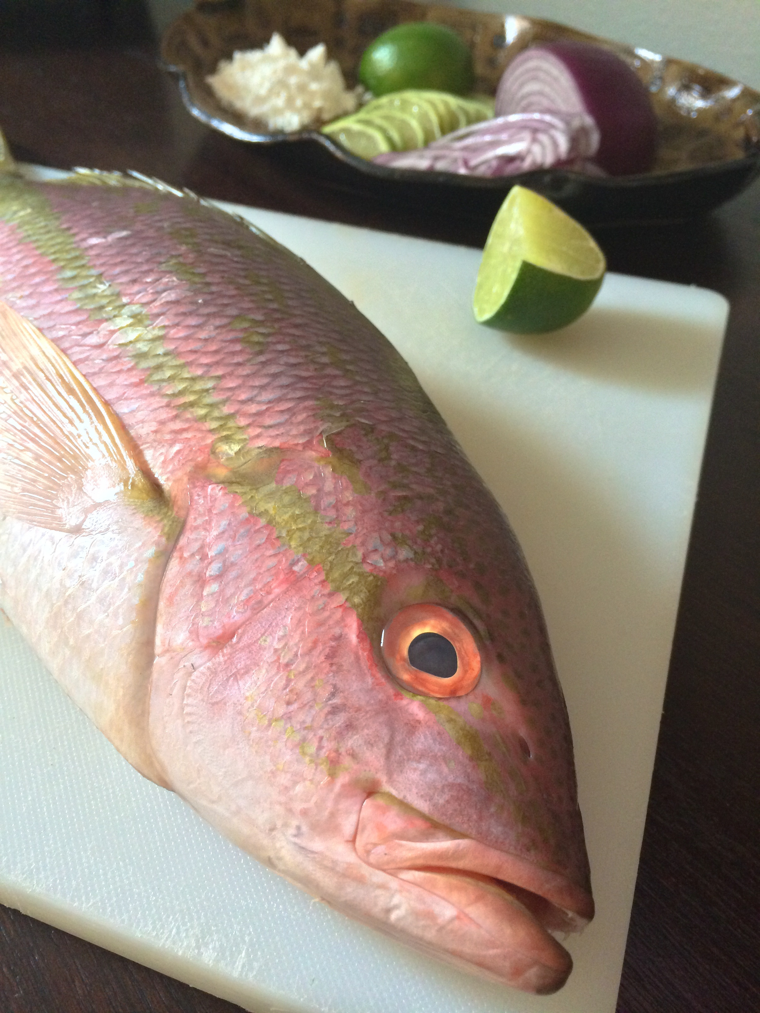 - 1 1/2 lb. red snapper, gutted and scaled